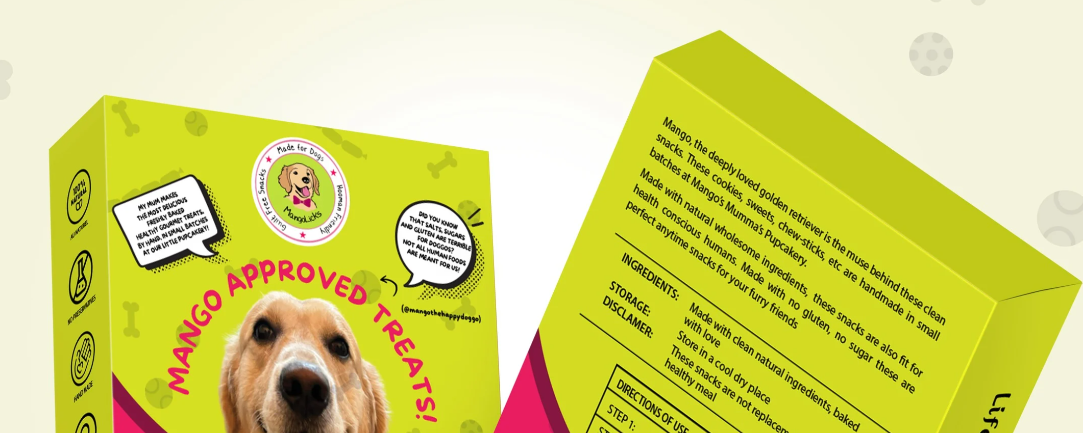 Having seen countless reels of Mango eagerly sampling fresh batches of homemade goodies, it was clear—Mango had to be the heart and face of the brand. We knew that the playful spirit and trustworthiness of Mango would resonate with pet parents everywhere. Thus, the “Mango Approved Treats” stamp became a central feature of the packaging, symbolising the quality and care that goes into each product.