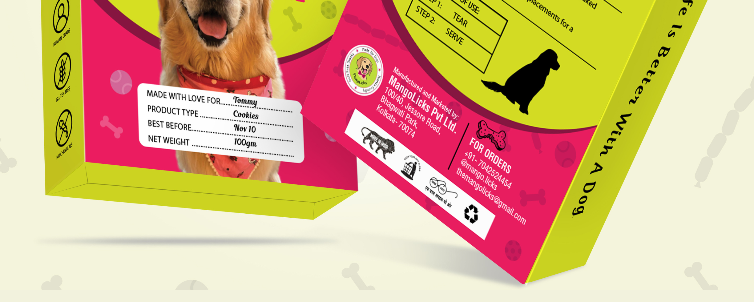 The result was a packaging design that not only met Paulami’s practical needs but also beautifully encapsulated the love, quality, and personal care that defines Mango Licks. Paulami quickly embraced the new design, and it has since become an integral part of every order from her small but beloved pupcakery.